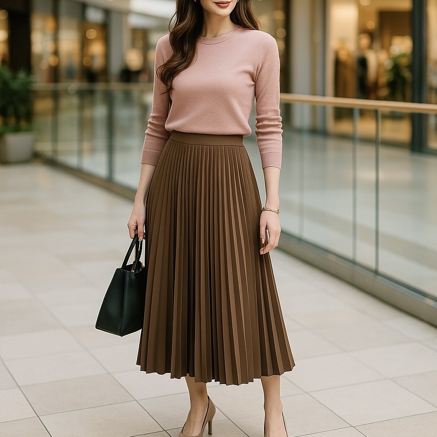 エレガントプリーツフレアスカート × シンプルニット