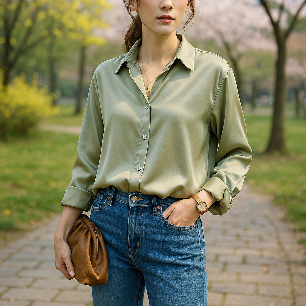 サテンリュクスシャツ × デニム