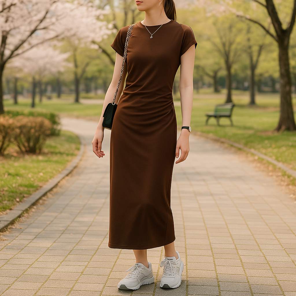 エフォートレススリムTシャツワンピース × スニーカー