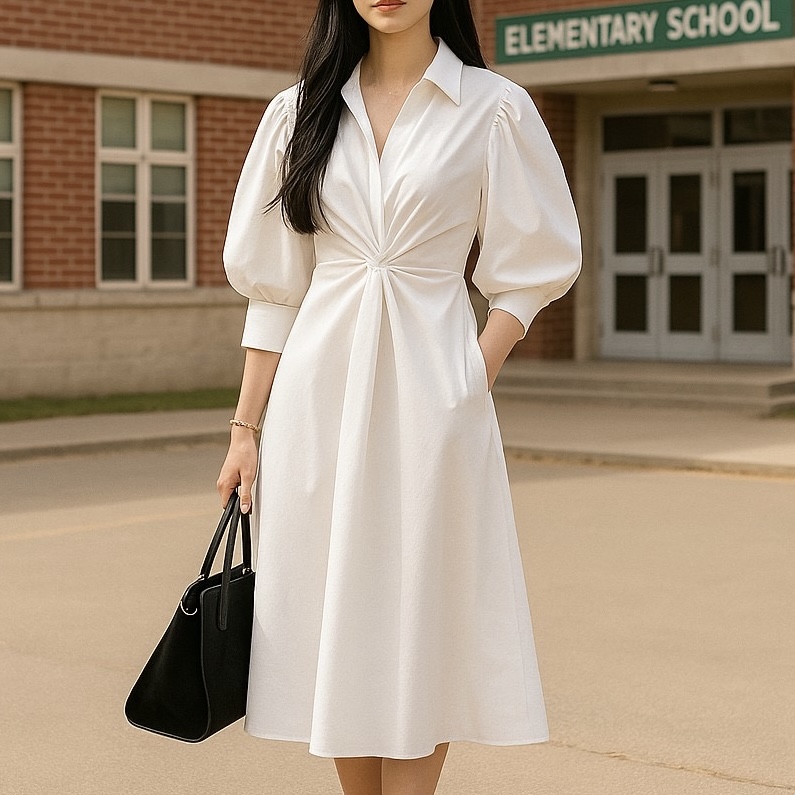 - シャツワンピでもカッチリ見えるデザインで、行事にも対応